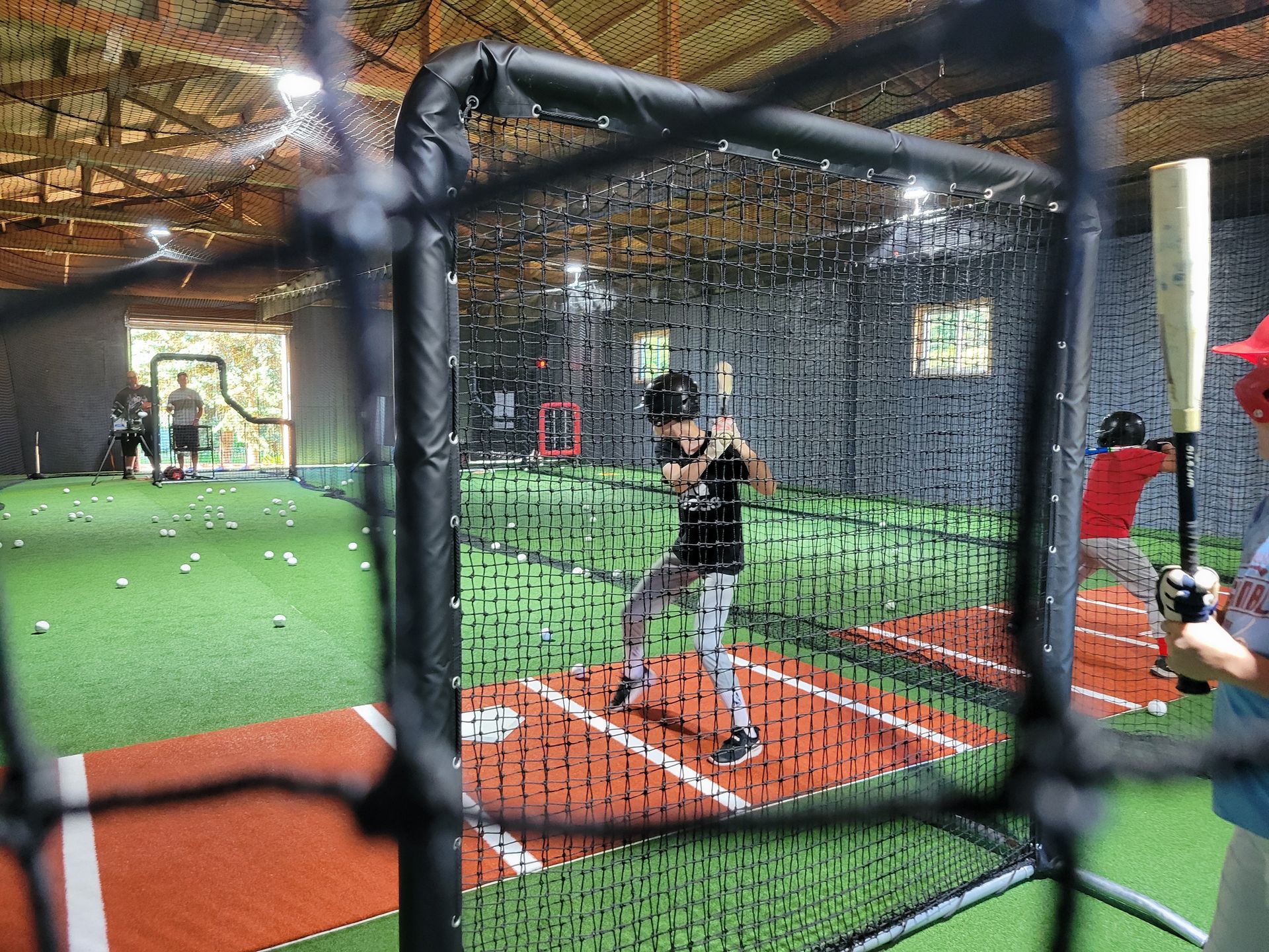BOOK NOW14x 65 hitting lane with protective L screen for coach/parent pitch and Jr hack attack Baseball pitching machine(throws 70+mph fastballs, right and left-handed curves, sliders, and split fingers) real baseball and softballs, not dimple or synthetic balls, also Jr hack attack softball machine (throws 60+mph fastballs, screwballs, curves drops, and rise) 12in balls. Tees and balls are available.